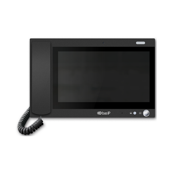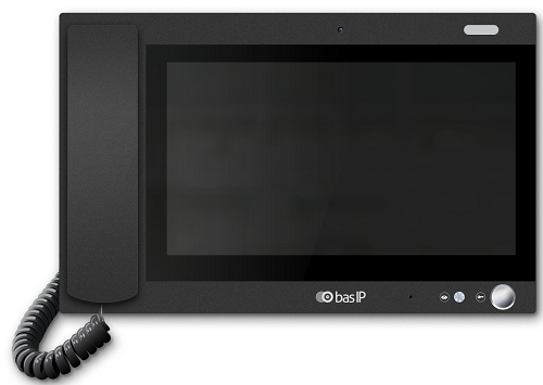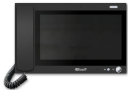 Монитор консьержа выполнен в пластиковом корпусе и оснащен трубкой для удобства разговора с жильцами дома.