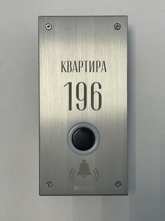 На лицевой панели звонка есть место для нанесения номера квартиры, названия или логотипа компании для идентификации звонка. Звонок также можно использовать как дополнительную бесконтактную кнопку совместно с вызывными панелями с механическими кнопками (например, подписать "Кнопка вызова консьержа" и подключить к многоквартирной панели).