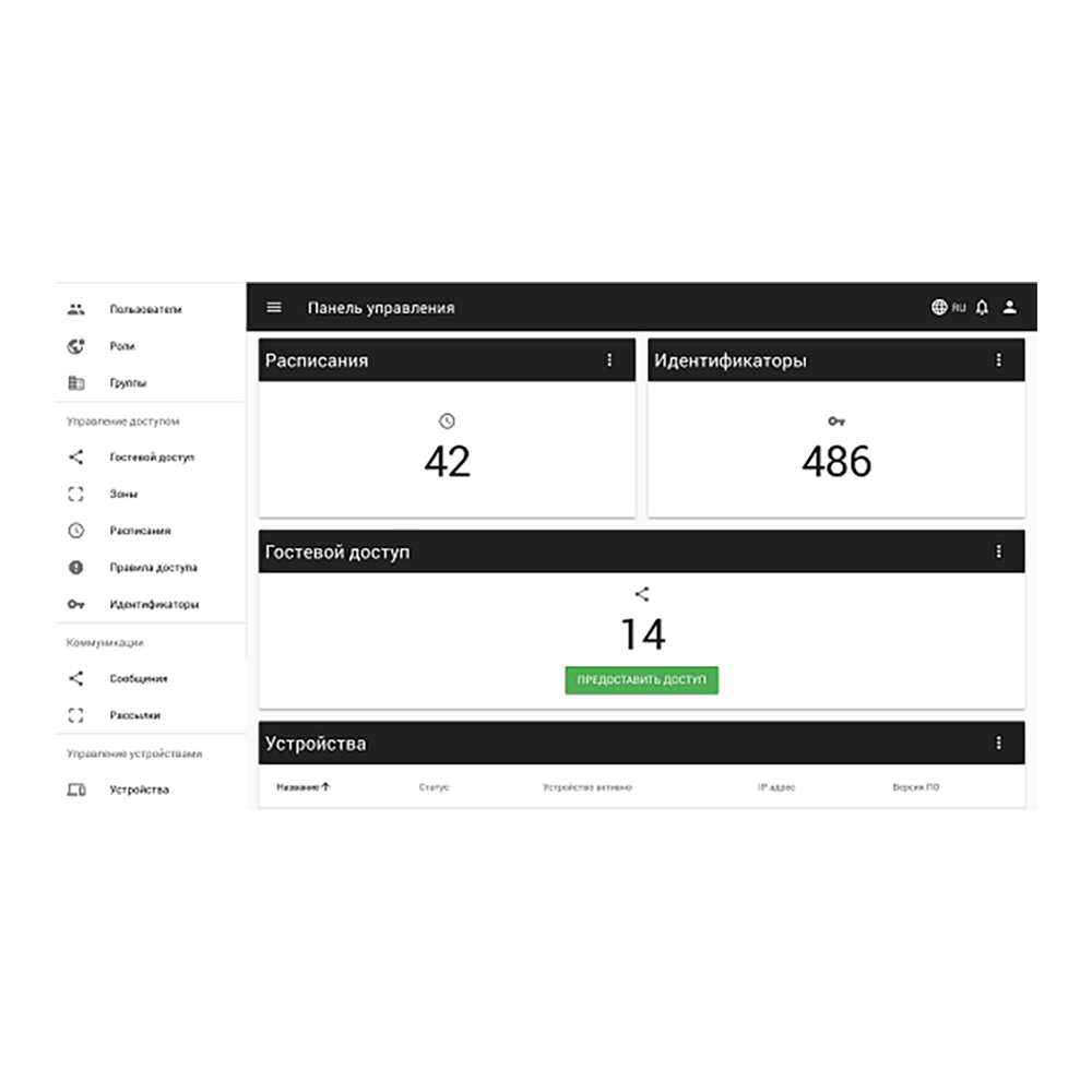 Предоставление гостевого доступа (на заданный период к определенным дверям или зонам).